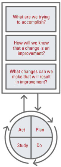 • Testing Changes: The Plan-Do-Study-Act (PDSA) cycle is shorthand for testing a change in the real work setting — by planning it, trying it, observing the results, and acting on what is learned. This is the scientific method adapted for action-oriented learning.